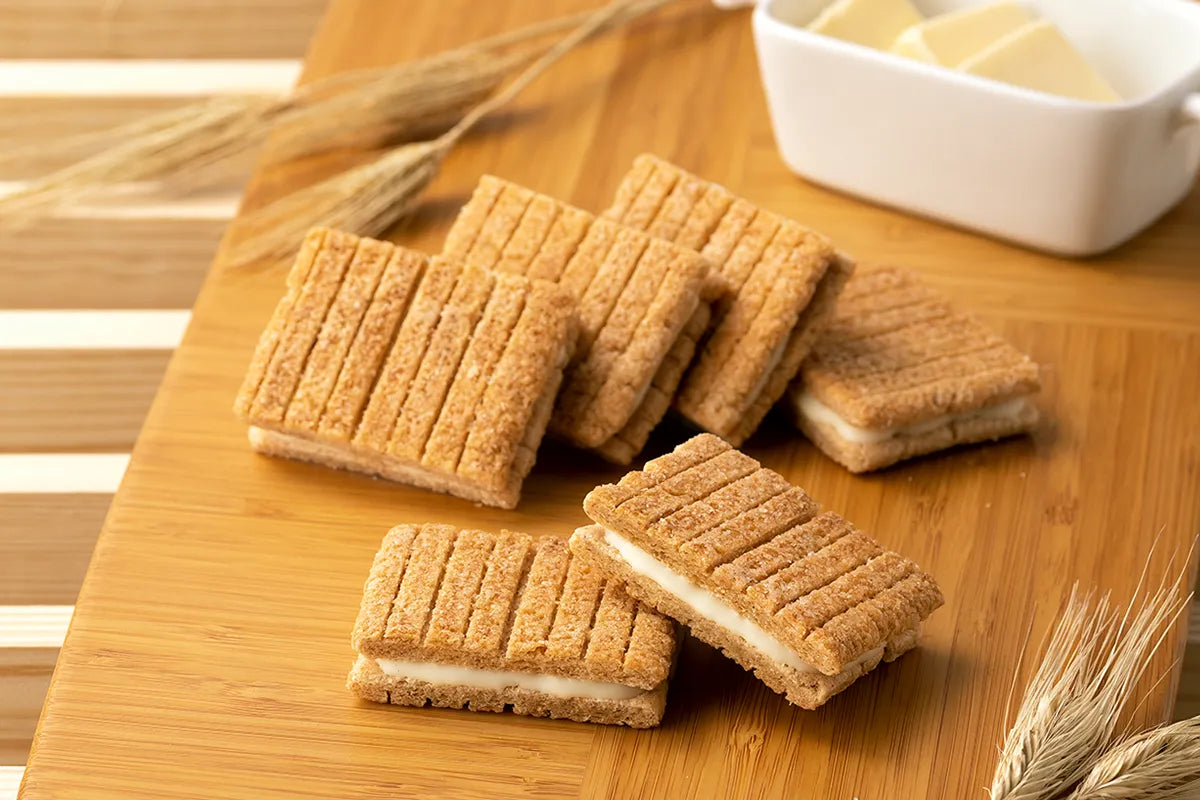 日本人氣伴手禮「Sugar Butter Tree」招牌商品「招牌奶油白朱古力夾心酥餅」以小麥製作,再裹上粒粒砂糖及奶油烤至金黃,並夾上濃濃奶味的白巧克力夾心,比一般的餅乾夾心更加酥脆有層次,一直以來都是熱門必買之一!