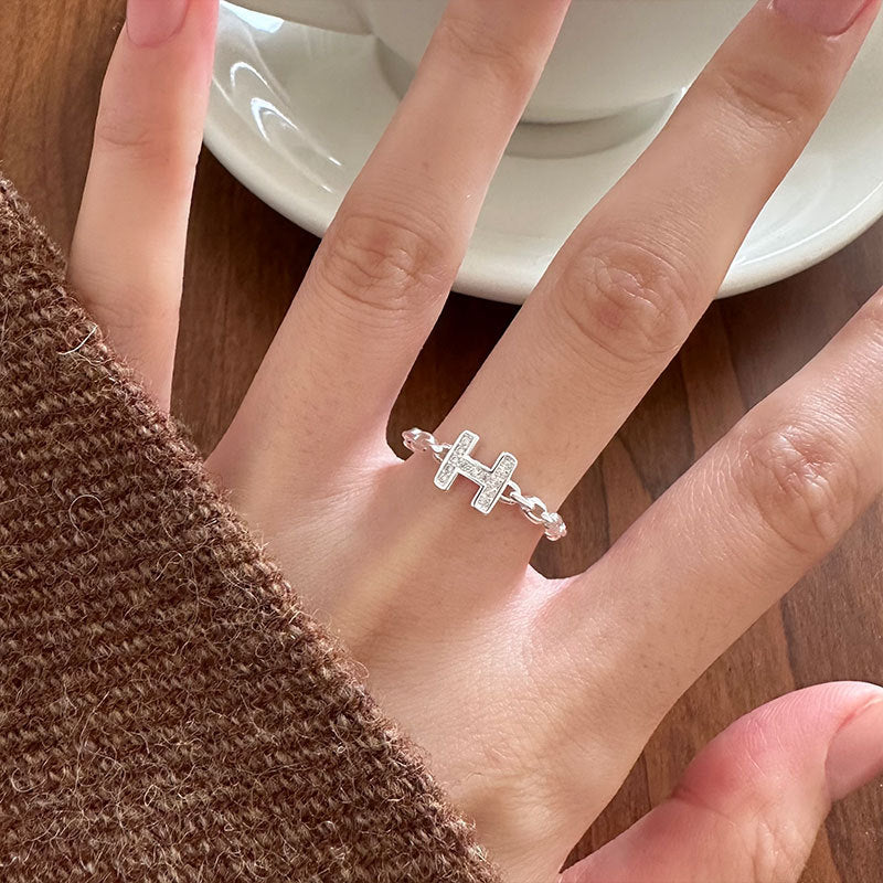 鑽石H型銀戒指